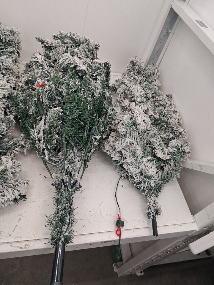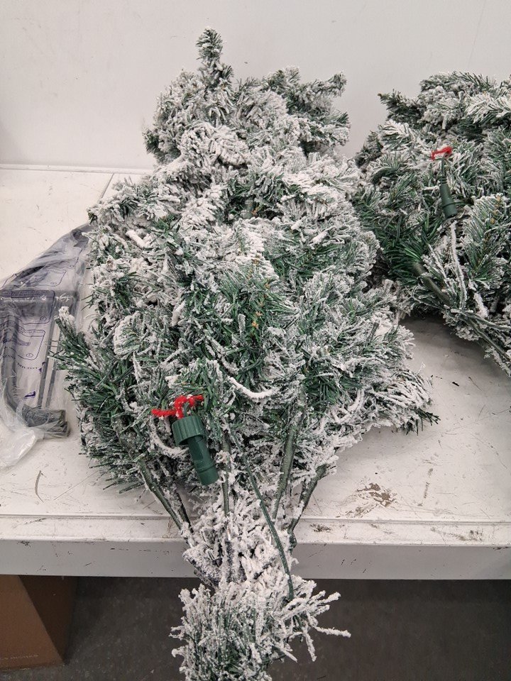 costway DORTALA pre-light snow flocked Hinged PVC Artificial Christmas Tree with stand and 350 white led lights - 7.5ft - green/white (model: cm22876us)