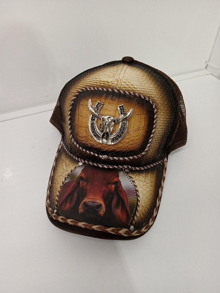 J & A CAPS INNOVATION western snapback ball cap with longhorn skull/horseshoe emblem & bull graphic - OSFM