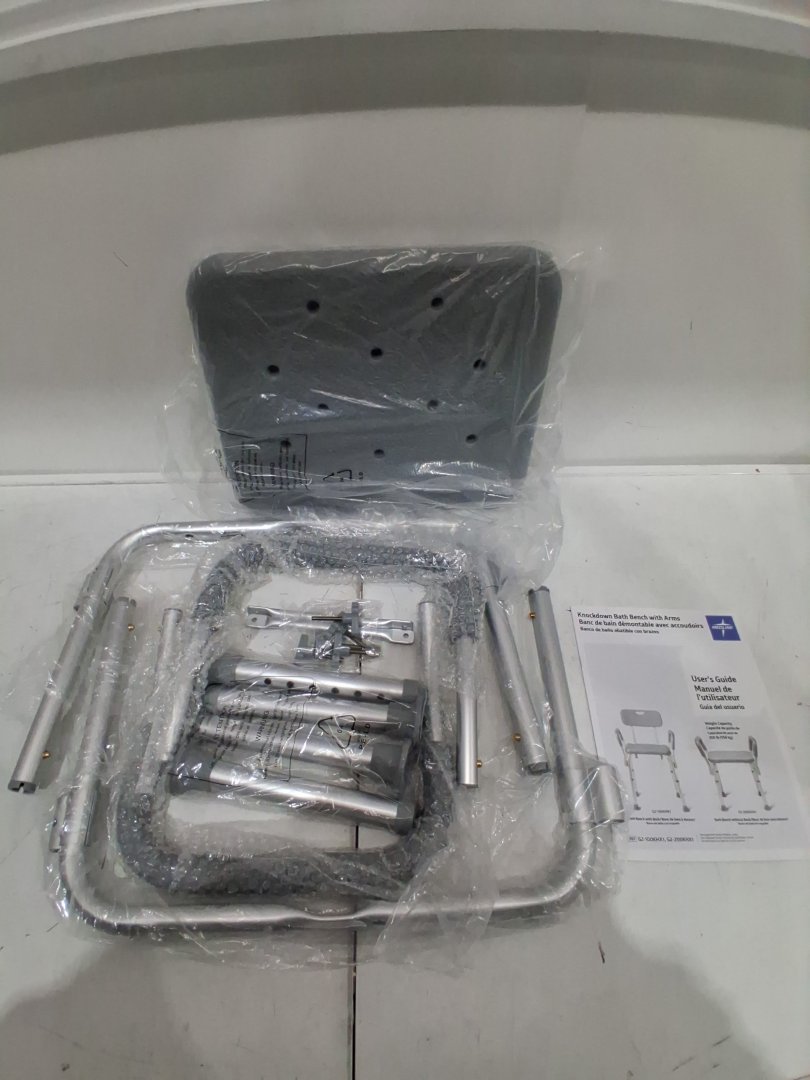 Medline Guardian Bath Chair with Arms (without Back) - 350LB Capacity - White/Grey (G2-200KHX1)
