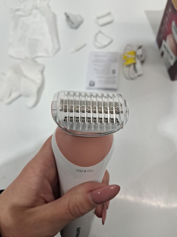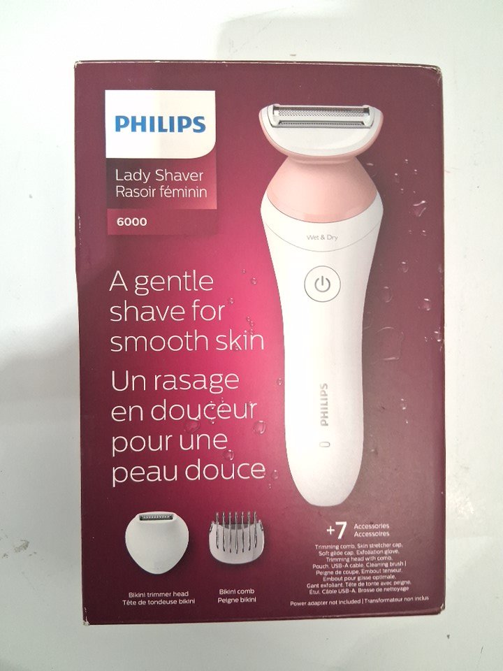 PHILIPS CORDLESS LADY SHAVER SERIES 6000 FOR WET and DRY USE WITH ACCESSORIES - WHITE/PINK (MODEL: BRL146/00)