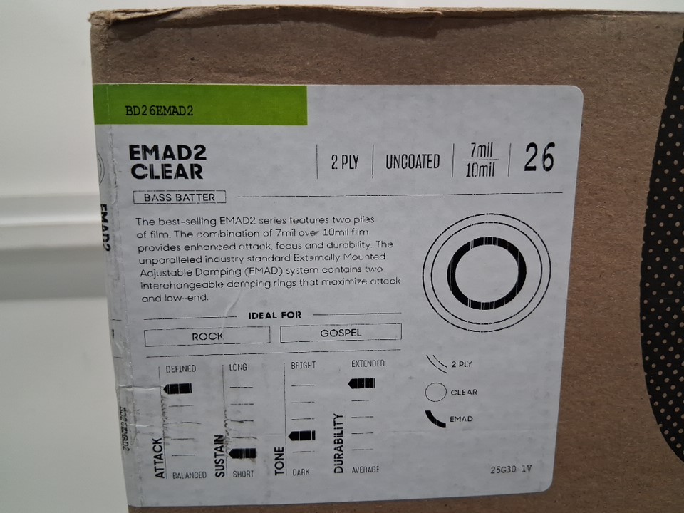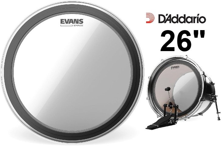 d'addario evans Externally Mounted Adjustable Damping drum head - 26" - clear (model: BD26EMAD2)