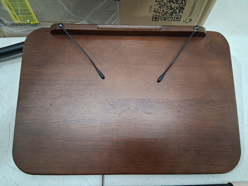 giluta adjustable-height floor stand with page clips - 15.2" x 10.4" platform - 21.8"-55.9" height - walnut/black (model: gt030)