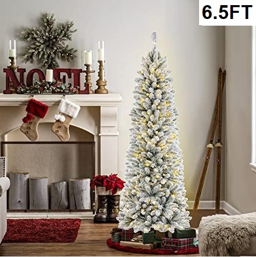 SHareconn Prelit Artificial Snow Flocked Pencil Christmas Tree with remote - 6.5ft - WHITE