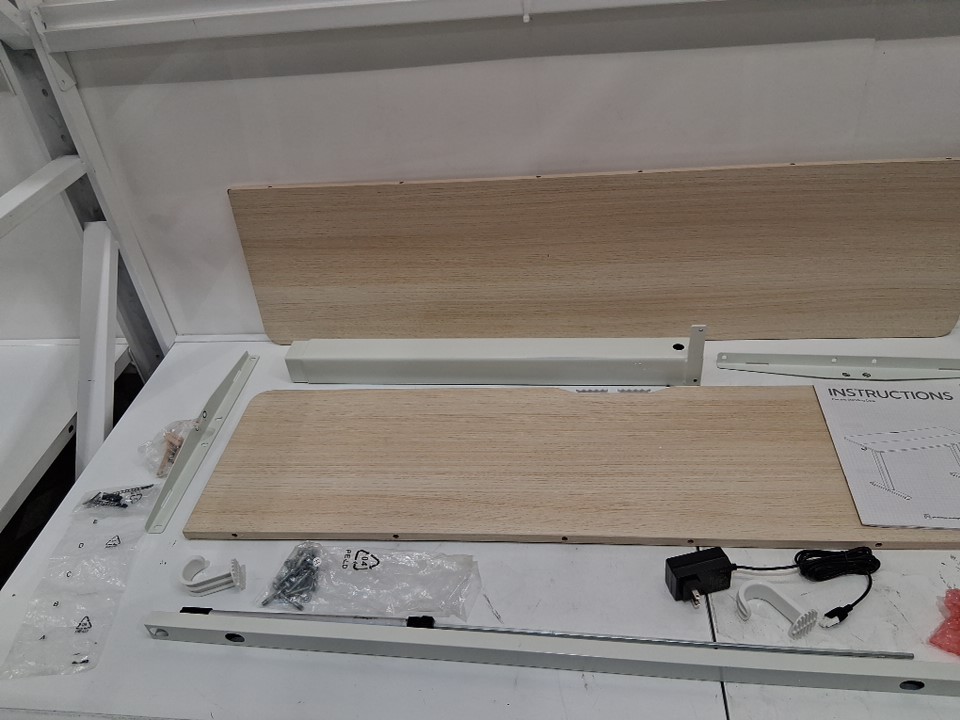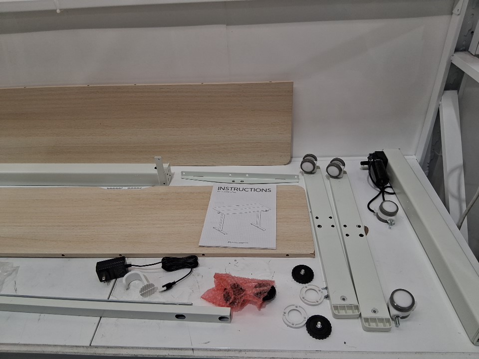 please note the product was discovered to be missing the controller and we found the product was covered in scratches, screw marks, and some damage to the corners. we believe the product can be use as just a normal desk or the controller replaced, please see photos for more details