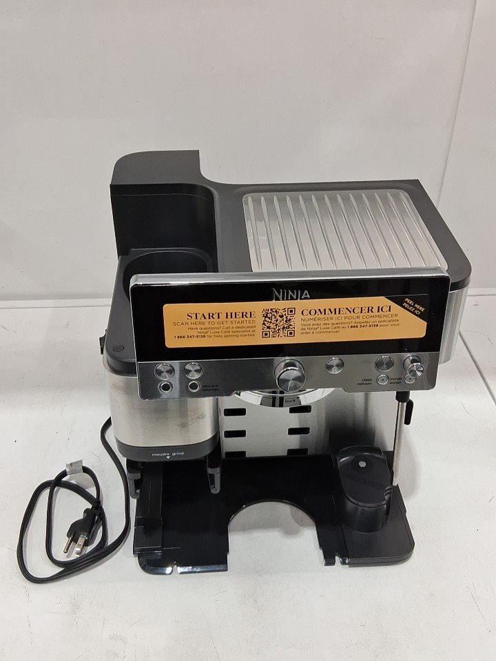 **Tested for power.** Item has minor coffee grounds debris in the grinder teeth from previous gentle use, see photos. Item does not include a water reservoir, bean hopper, drip tray/grates, portafilter, or any accessories/cleaning supplies, see photos. Various replacement parts can be found on Amazon (e.g. https://www.amazon.ca/Bottomless-Portafilter-Ninja-Included-Compatible/dp/B0FGH3HNBM, https://www.amazon.ca/Coffee-Maker-Compatible-ES701%EF%BC%8CCoffee-Machine/dp/B0FHHD7YQK). *GENERIC CONDITION STATEMENT* This item has been handled/inspected, tested if needed by our listing staff to the best of their ability/knowledge and for an unknown reason arrived to our facility with an issue. This issue can either be a very minor/major cosmetic issue which most likely occurred during shipping such as a dent, indent, scuff, stain, scratch or nick. If not a cosmetic issue, it can be a function issue with the item itself or there could be certain parts missing to make the item complete from how it is sold originally. (See lister notes and photos attached of the issue stated as well as packaging condition).