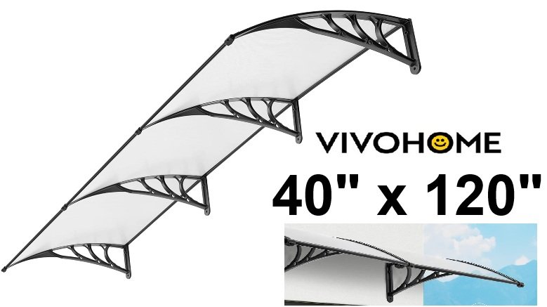 VIVOHOME Polycarbonate Transparent Window Door Awning Canopy with Black Bracket-40" x 120" -black /clear-(model: vh1571)