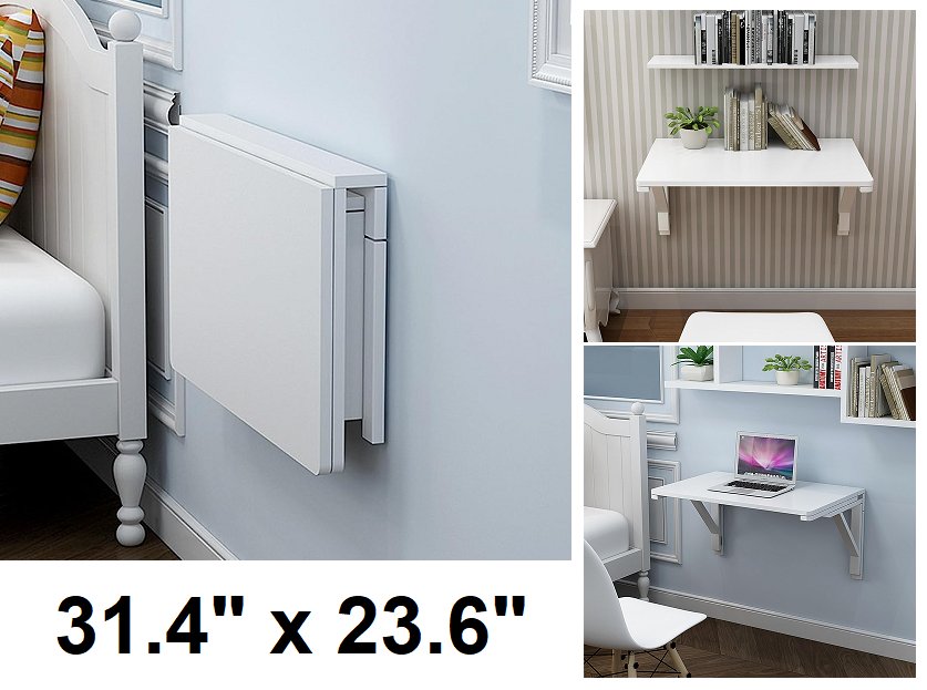 mm melisen Wall Mounted Folding Table - 31.4'' x 23.6'' - White