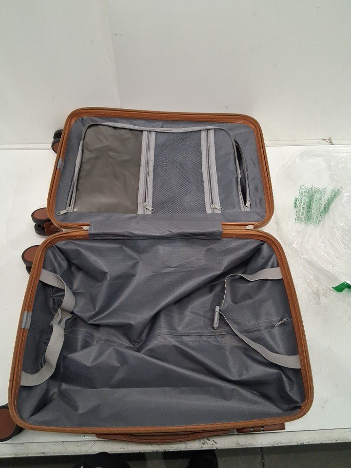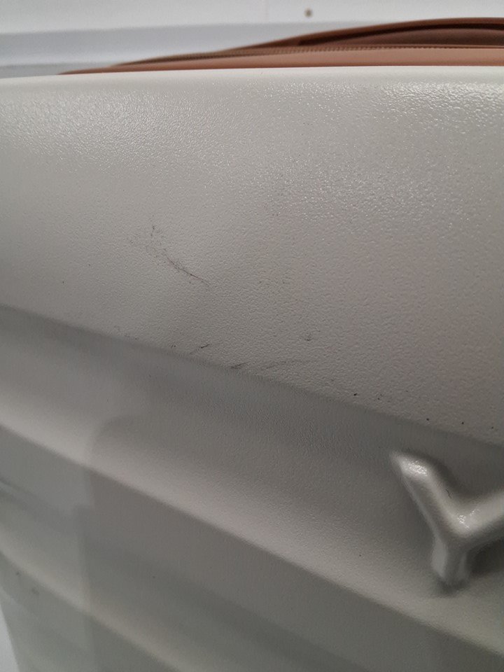 product has some scratches from previous use, and the zipper lock combination has been set and we don't know what it is (see photos)