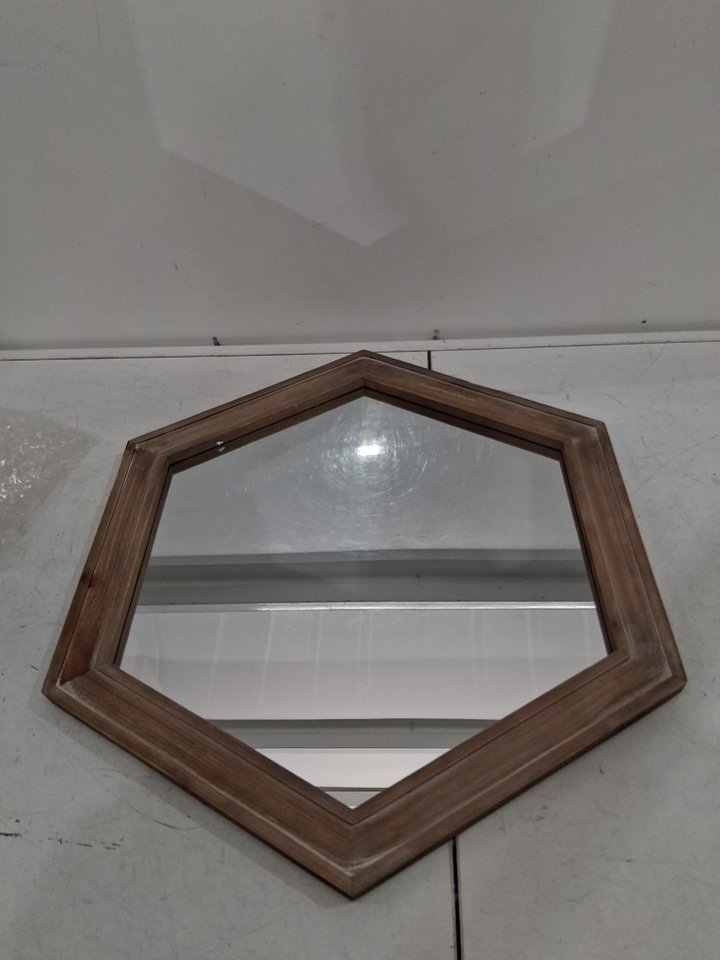 Stonebriar Decorative Hexagon Wall Mirror with Natural Wood Frame and Attached Hanging Bracket - 24" x 21" - natural (model: sb-6145a)
