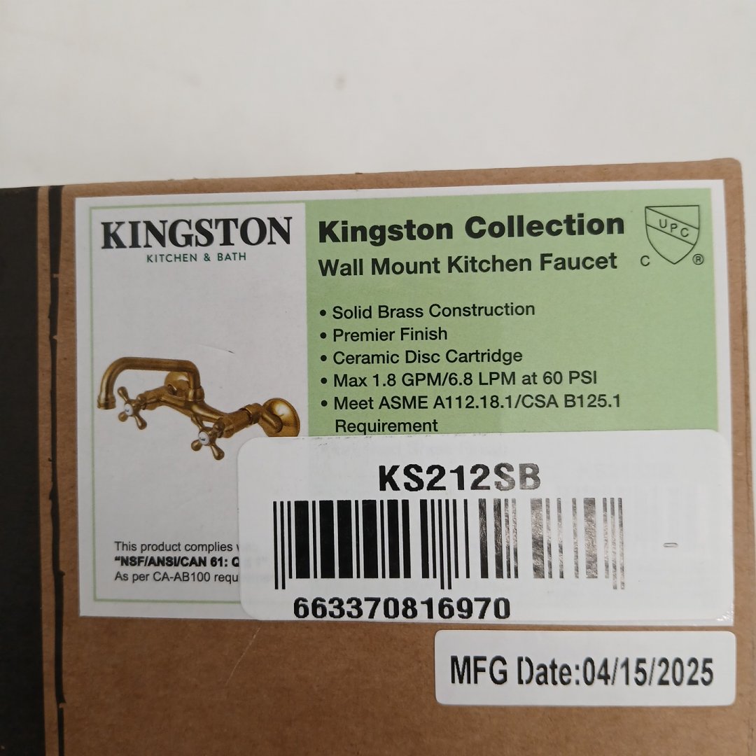 Kingston Brass Collection Two-Handle 2-Hole Wall Mount Bar Faucet - Brushed Brass (Model: KS212SB)