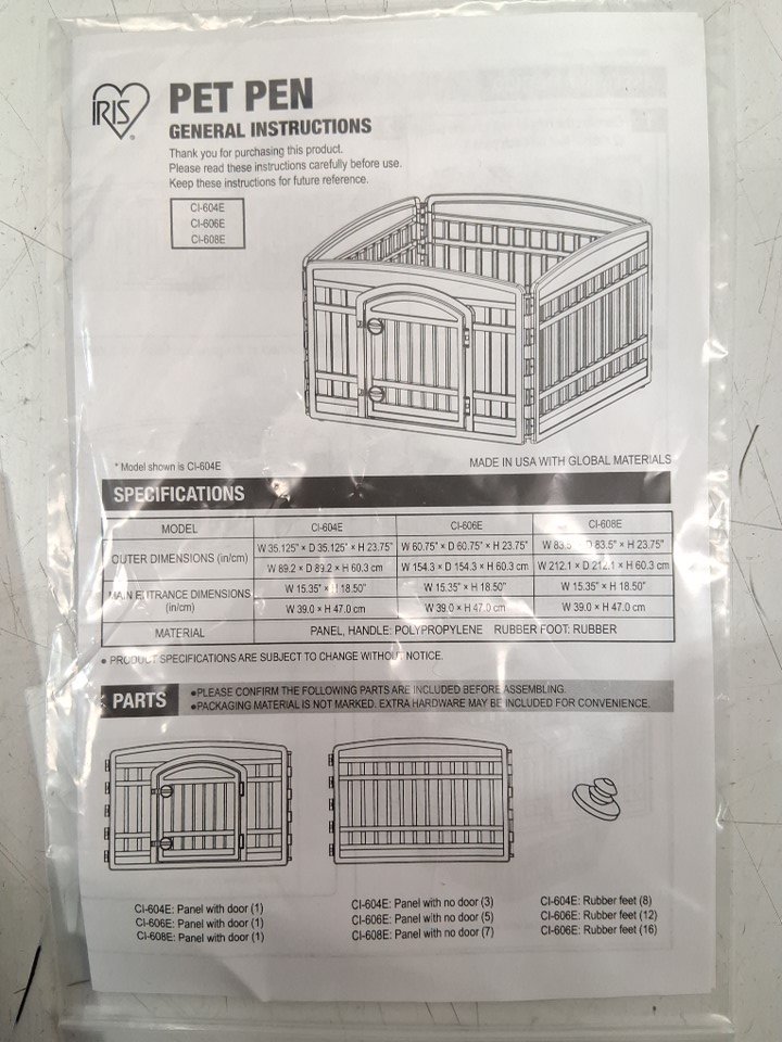 IRIS EXERCISE 4-PANEL PET PLAYPEN FOR PUPPYS AND SMALL DOGS - 35.1" x 35.1" x 23.7"- BLACK ( MODEL: 586699 / ci-604e)