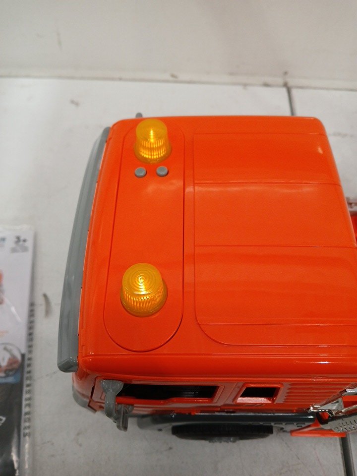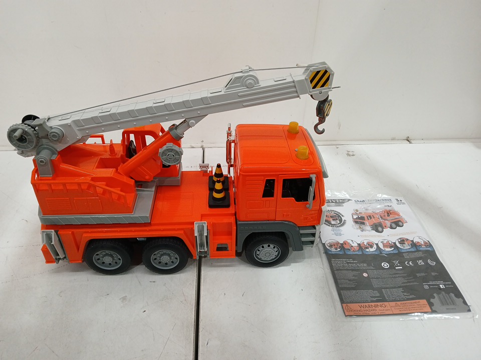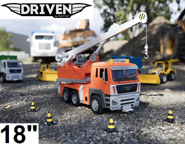 driven by battat 1:16 scale crane truck toy - 18" - orange/grey (model: ‎WH1214C1Z)