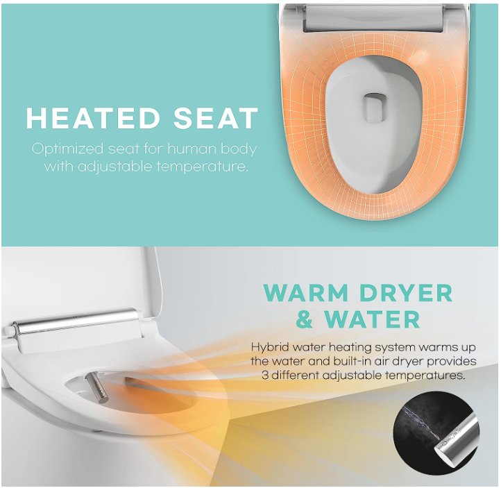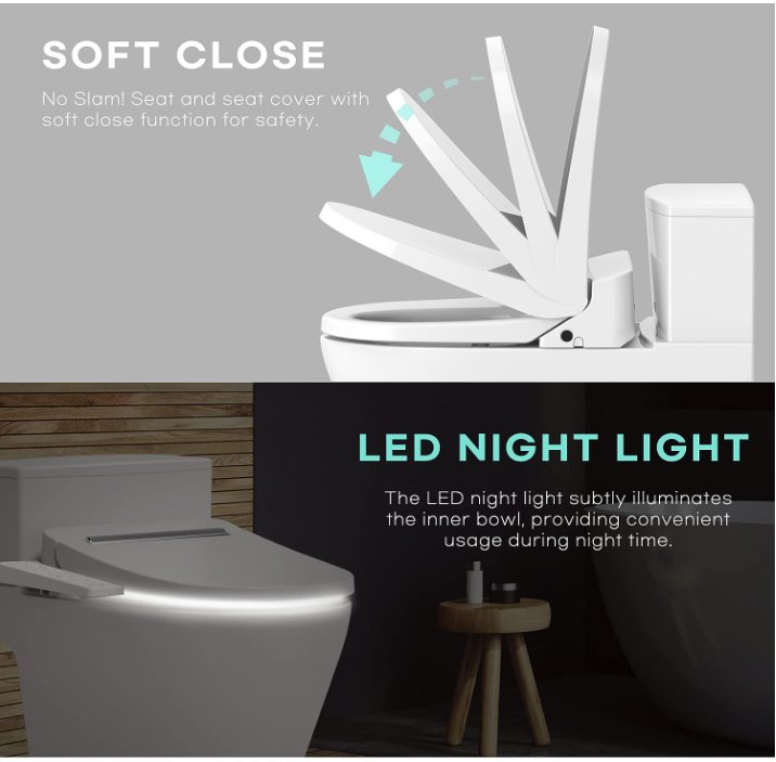VOVO SOFT-CLOSE ELECTRONIC BIDET TOILET SEAT WITH HEAT FUNCTIONS & NIGHT-LIGHT - ROUND - WHITE (MODEL: VB-3100SR)