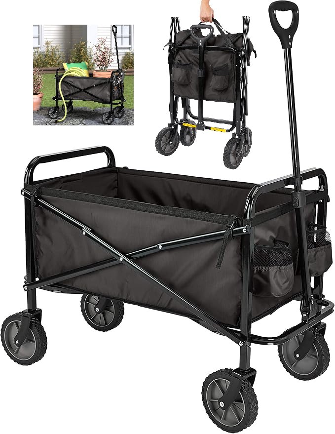 amazon basics portable and foldable utility cart with carrying bag - holds up to 265lbs - black
