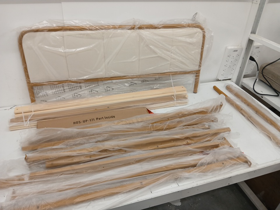 Homfa Platform Bed Frame WITH HEADBOARD - TWIN - WHITE/GOLD (MODEL: HOS-UP-171)
