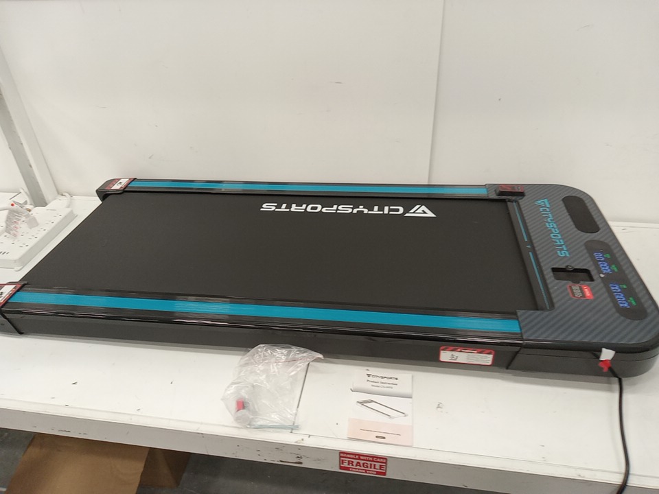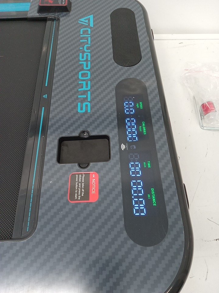 the treadmill looks new, but it is missing the remote, but it does turn on. please see photos