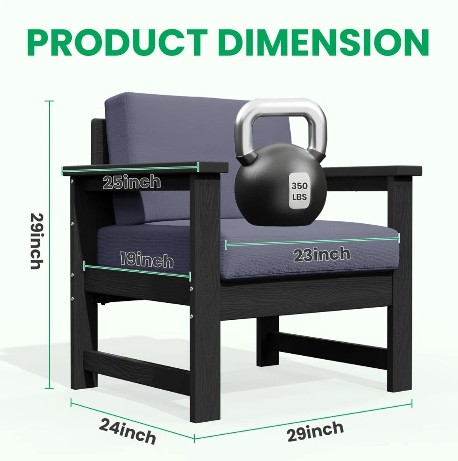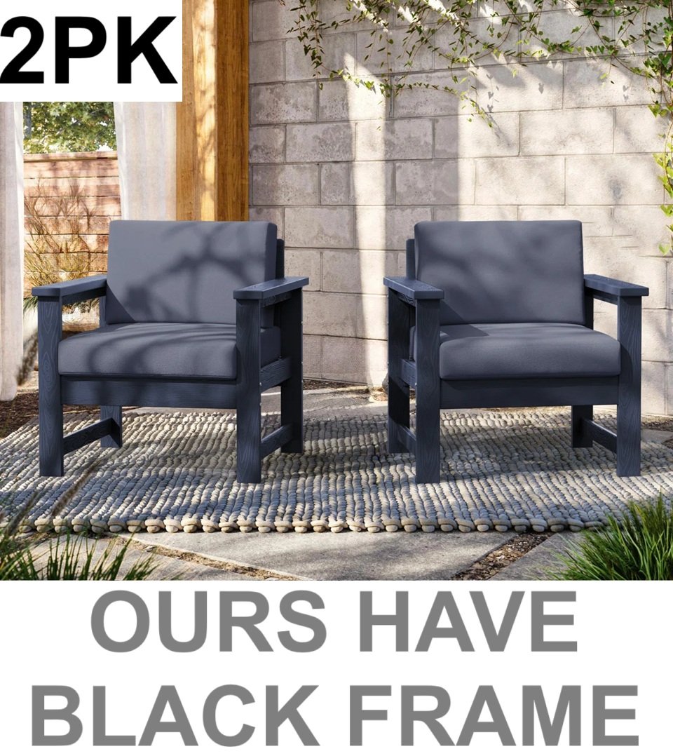 2pk ebern designs outdoor hdpe chair with cushions - 29" x 24" x 29" - black frame w/gray cushions - (model: a111-004-001)