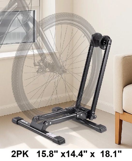 2PK VEVOR Alloy Steel Rust-Resistant Foldable Floor Stand Bike Storage Rack for 20" to 29" Mountain & Road Bikes - 15.8" x 14.4" x 18.1" - Black (Model: HS-T026AF-2)