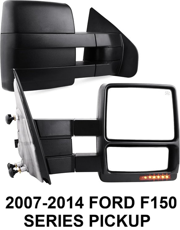 YITAMOTOR Power Heated with LED Signal and Puddle Light Towing Mirrors - 2007-2014 Ford F150 Series Pickup - Black