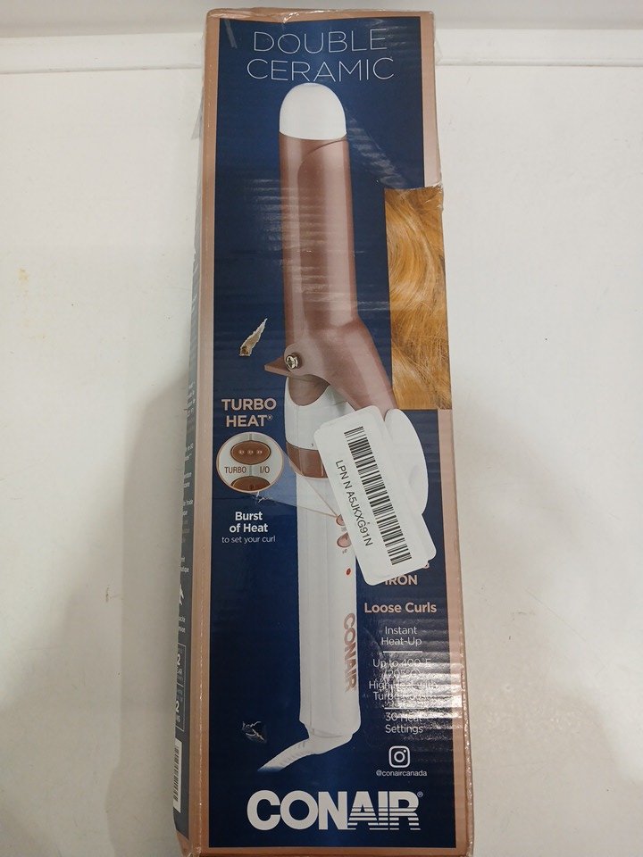 CONAIR DOUBLE CERAMIC CURLING IRON - 1 1/4" BARREL - WHITE/ROSE GOLD (MODEL: CD702GNC)