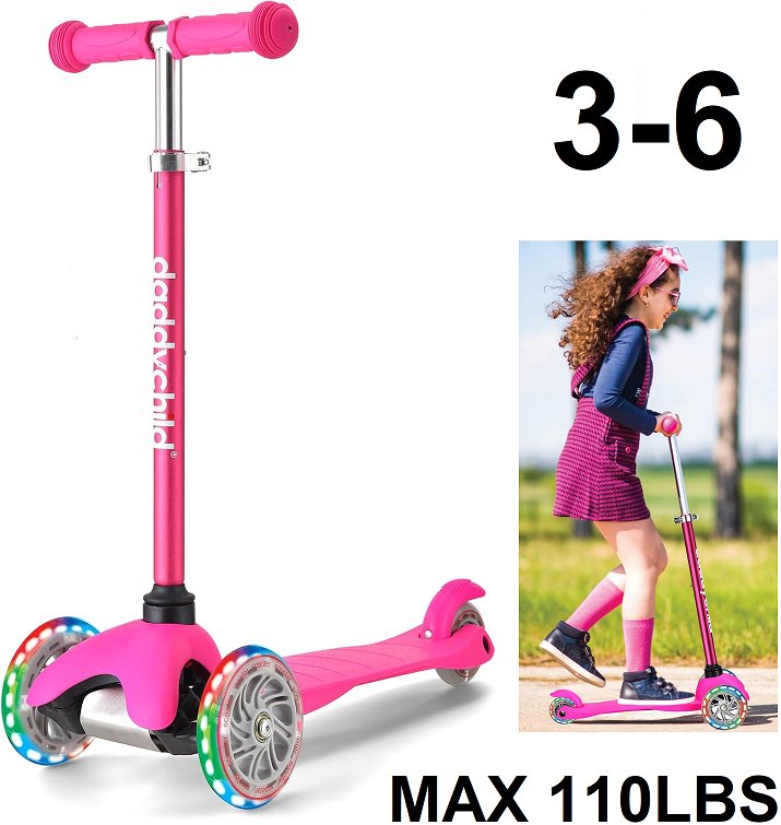TODDLERS daddy child 3 WHEEL SCOOTER WITH ADJUSTABLE HANDLE BAR HEIGHT - age 3-6, 110lbs max - (model: s909g)