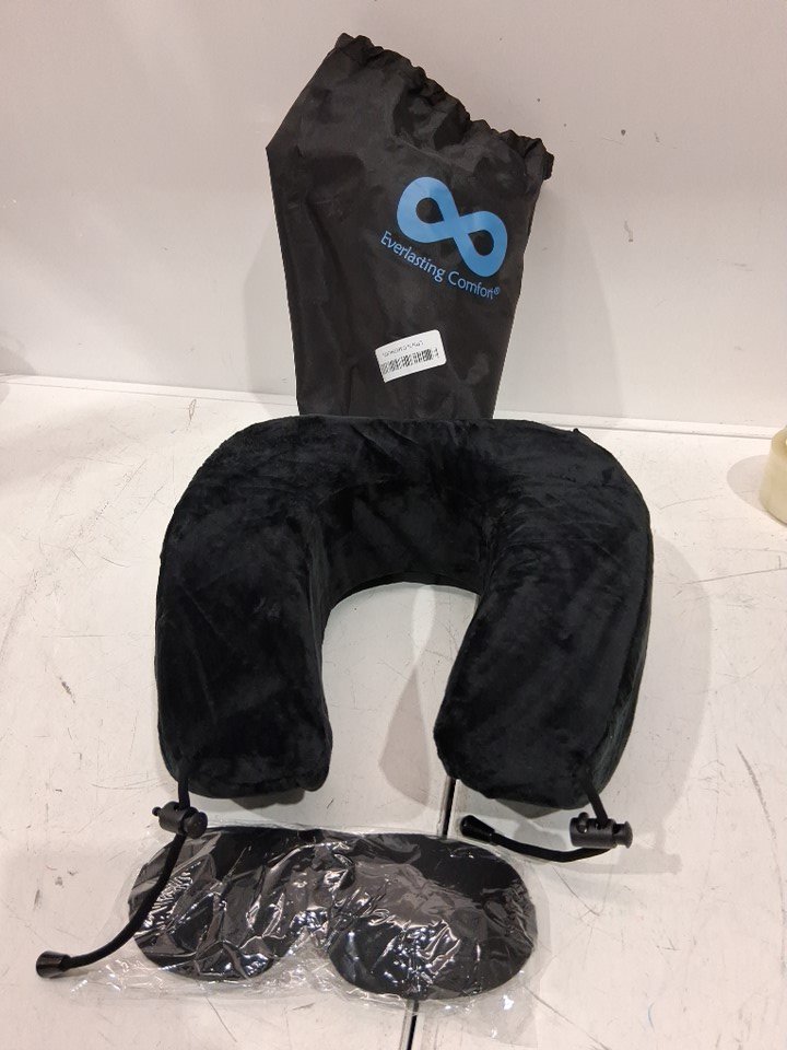 EVERLASTING COMFORT MEMORY FOAM TRAVEL NECK PILLOW WITH AIRPLANE ACCESORIES - BLACK