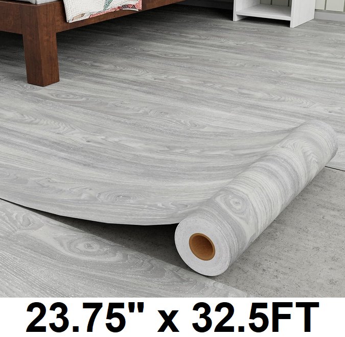 Homease Vinyl Flooring Roll, Wood Grain Peel & Stick Waterproof Wear-Resistant Vinyl Plank Flooring - 23.75" x 32.5FT - Light Grey