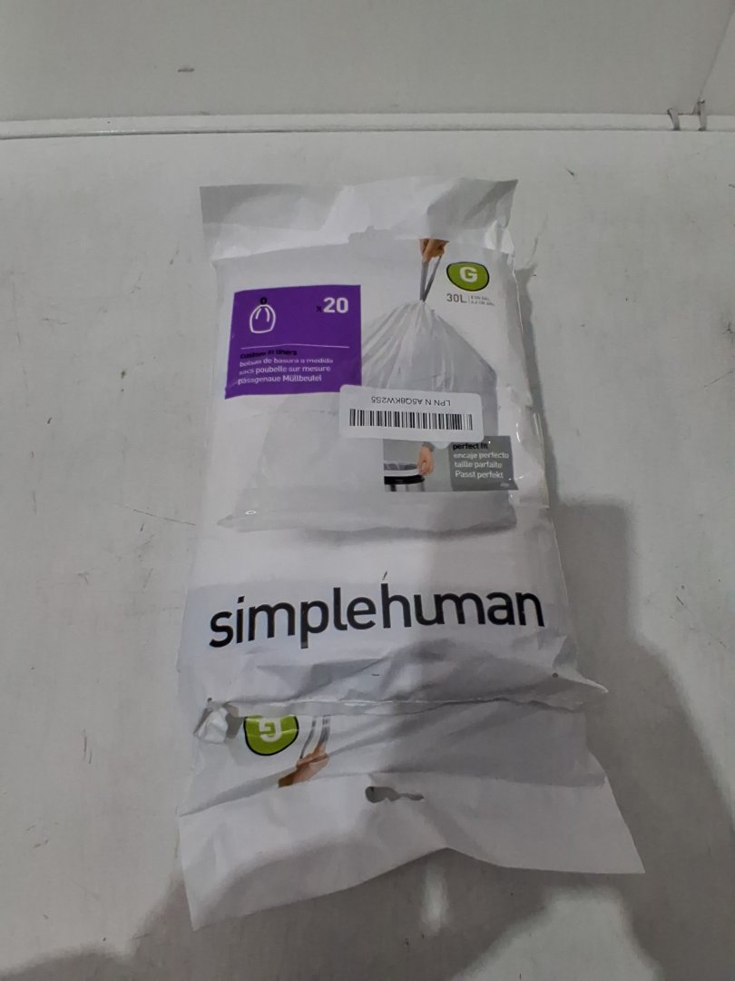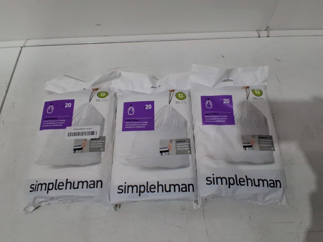 3pk SIMPLEHUMAN custom fit liners size Code G - 30L - 20 BAGS/PACKAGE