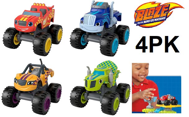 4PK FISHER PRICE BLAZE THE MONSTER MACHINES PUSH ALONG VEHICLES - AGES 3+ - (MODEL: GXV81)