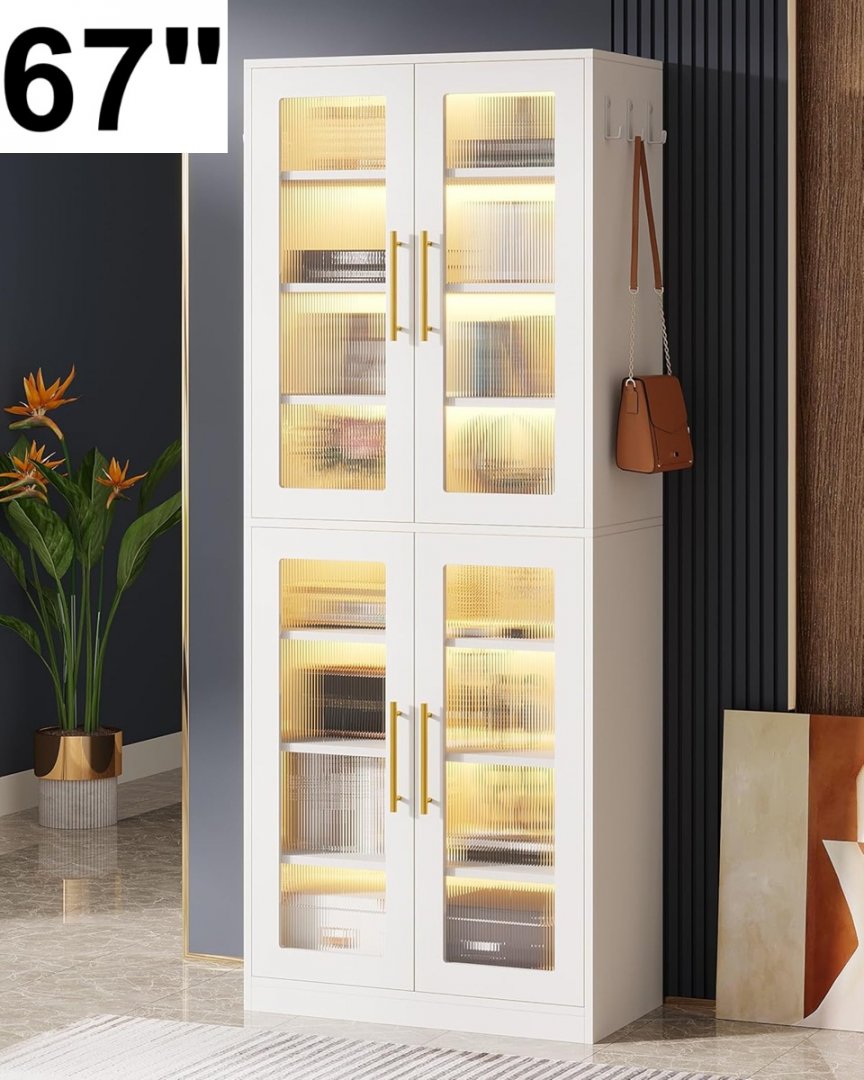 Tribesigns storage cabinet with adjustable shelves, hanging hooks, and led lights - 67" x 25" x 14" - white - (model: hoga-j0204)