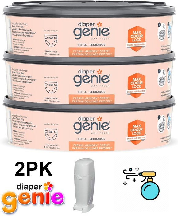 2PK (480 DIAPERS TOTAL) PLAYTEX DIAPER GENIE MAX FRESH clean laundry scent DIAPER PAIL REFILLS - CLEAN LAUNDRY SCENT
