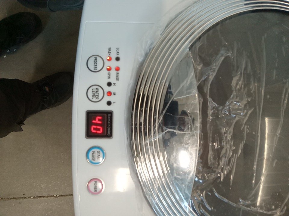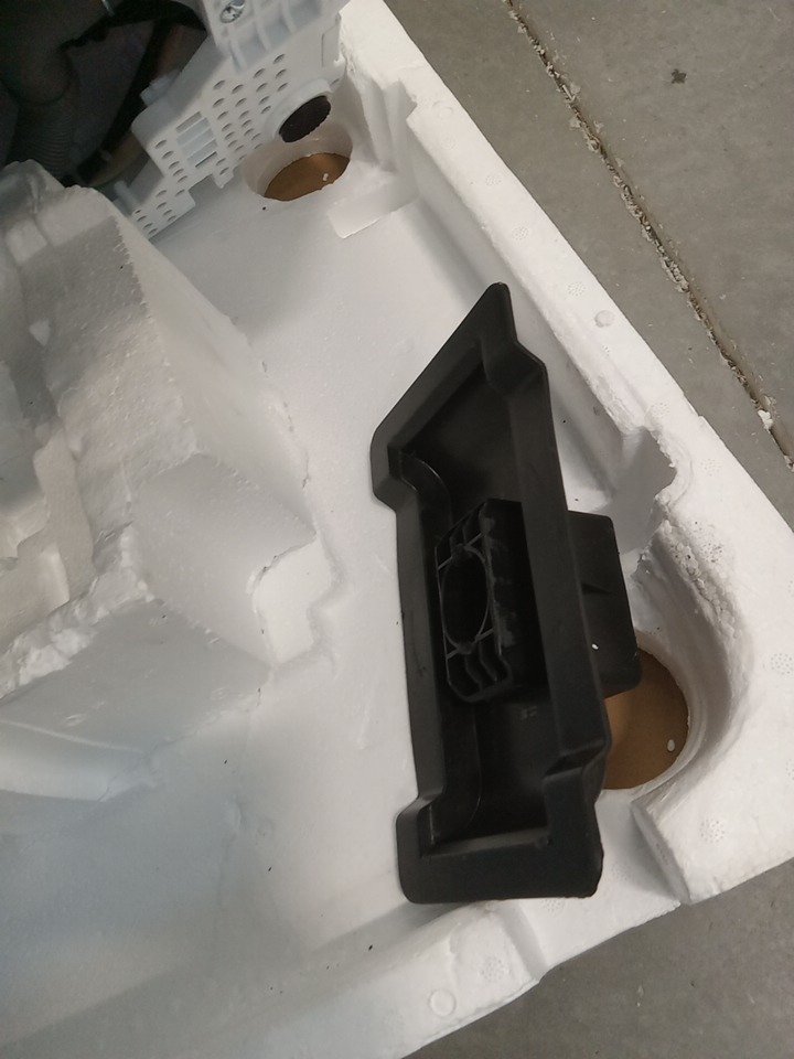 Some water was present inside the pump indicating prior use. A black piece was found beneath the machine, cannot confirm if it a broken piece or not. Tested for basic power, see photos.