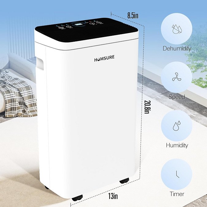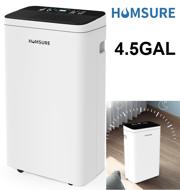 humsure dehumidifier with drainage hose - 4.5gal - 8.5" x 20.8" x 13" - white (model: ap10-2010ee)