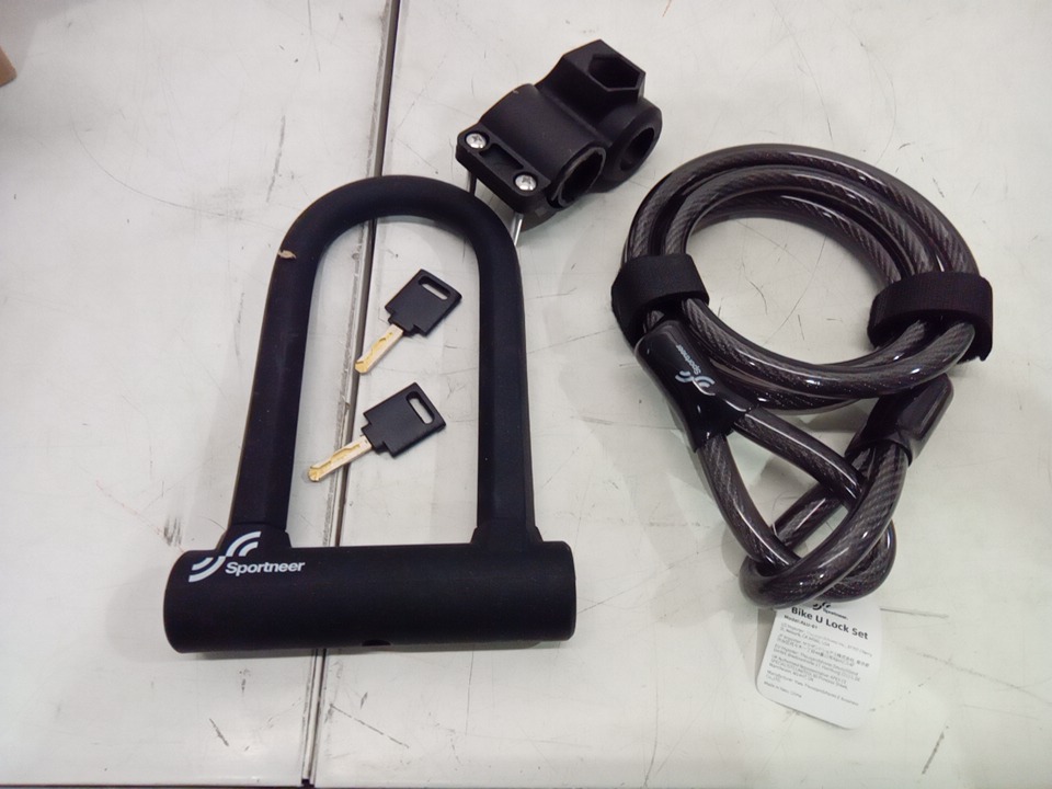 Sportneer Bike U Lock with 12mm x1.5m Steel Cable - 8" x 5" - black - (model: alu-01)