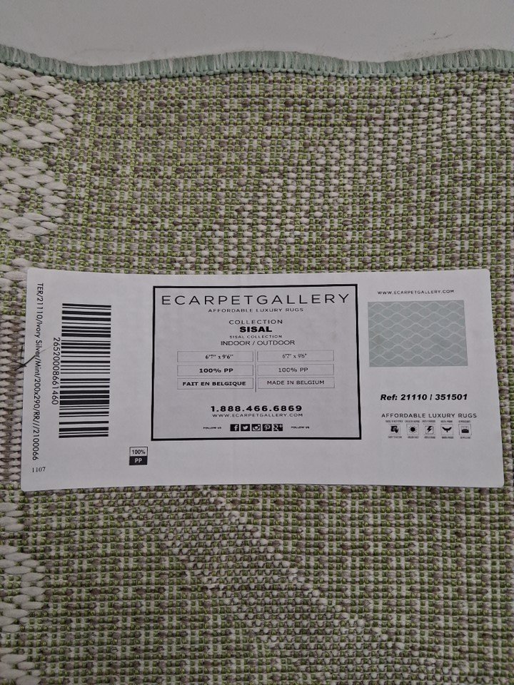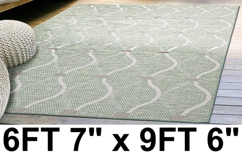 ECARPETGALLERY Indoor Outdoor Waterproof Rectangular Area Rug - 6FT 7" x 9FT 6" - Mint (Model: 351501V)