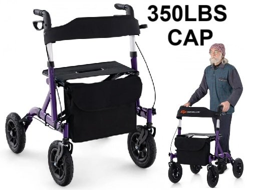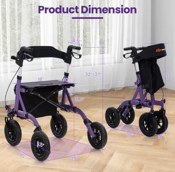 costway ALL-TERRAIN foldable rollator height adjustable rolling walker with seat and storage pouch - 350lbs cap - purple (model: jh10021pu)