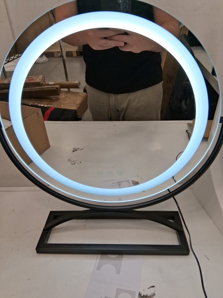 COSTWAY Round Makeup Vanity Mirror with Lights 3 Color Dimmable Touch Control - 16" - BLACK