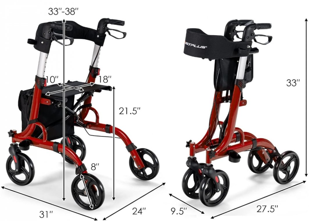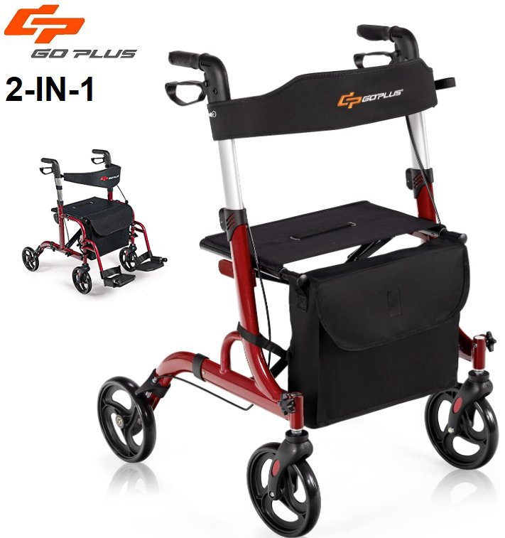 goplus 2-in-1 Rollator Walker with seat and 8" wheels- red - (Model: jh10007re)