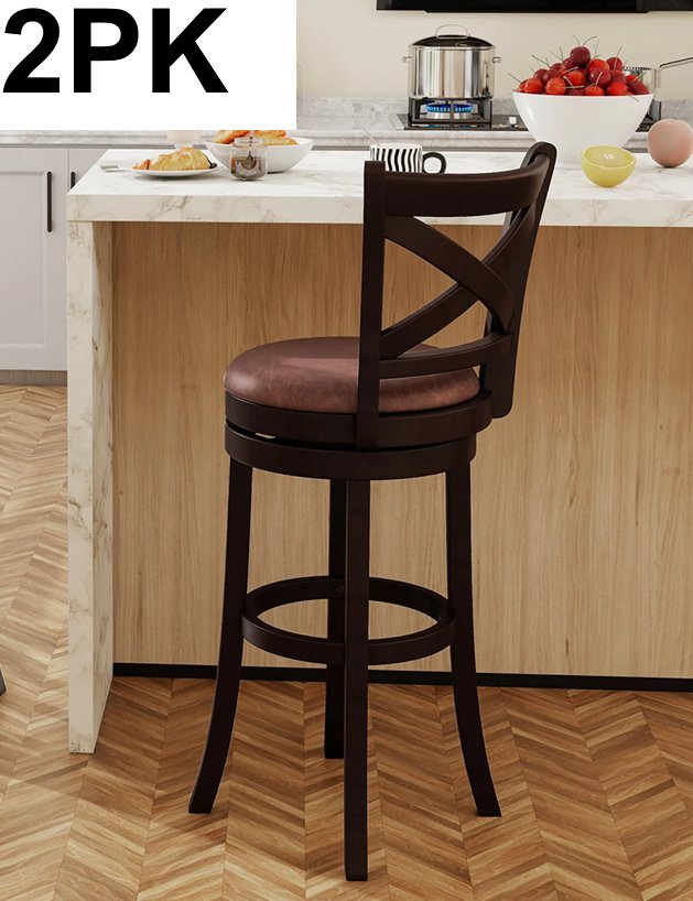 2pk COSTWAY ERGONOMIC BAR STOOL FOR DINING ROOM - 26/30" - brown