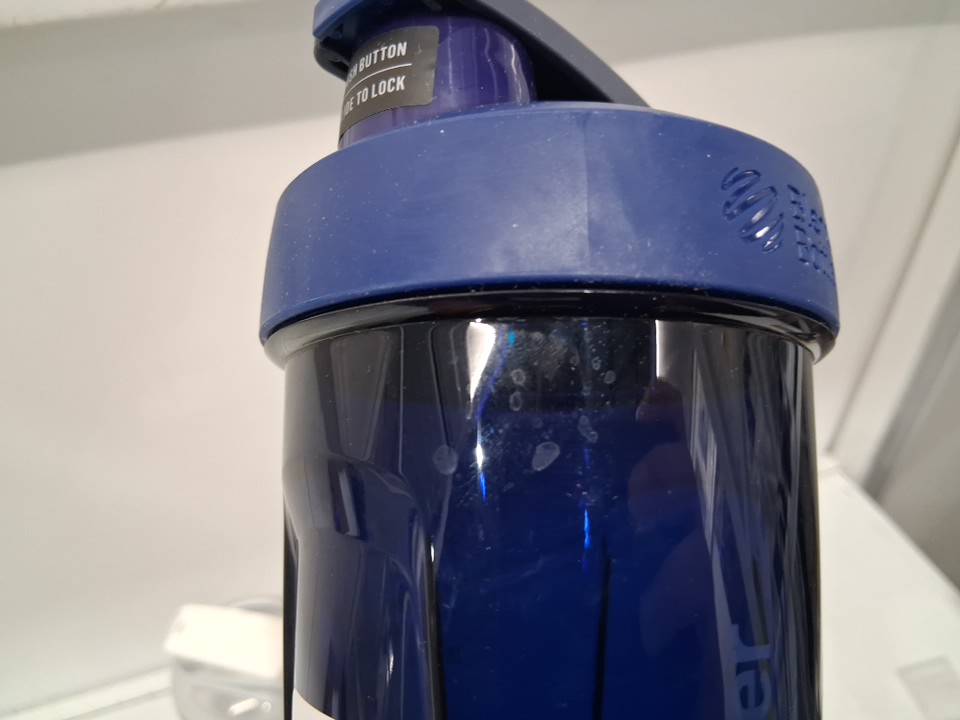Blue bottle has signs of use along the cap, see photos.