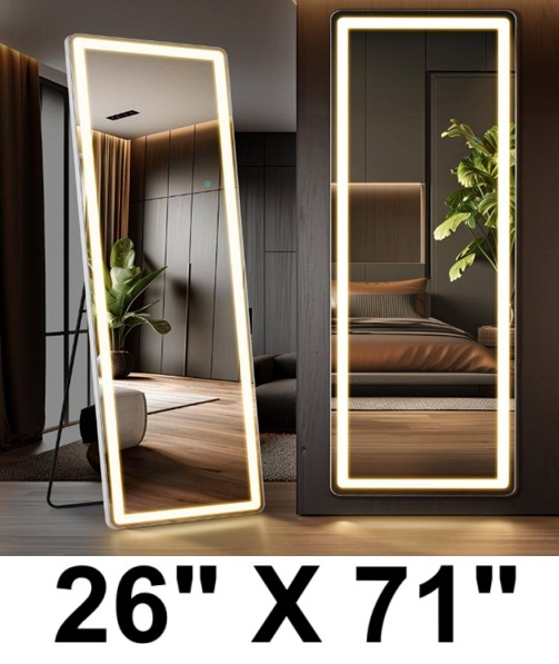 FIRNEWST LED Light Rectangular Frameless Full Length Mirror Floor/WALL HANGING - 26" X 71" - SILVER (MODEL: MI-FYLED-2671N-WT)