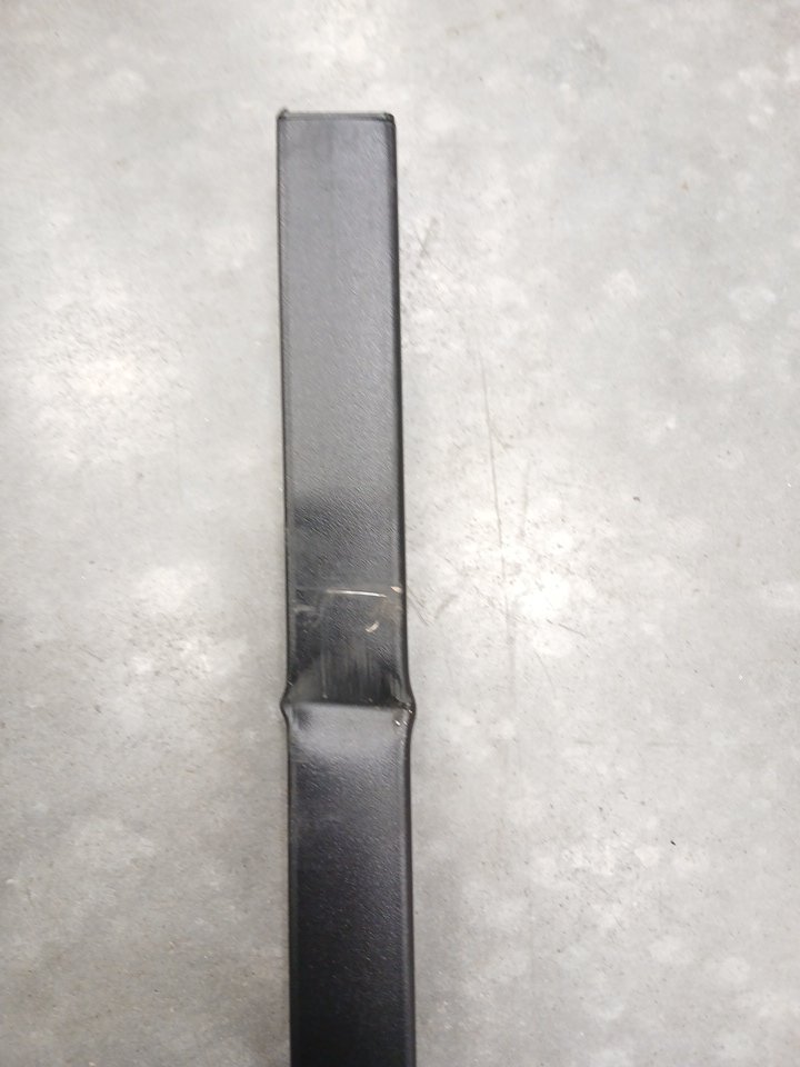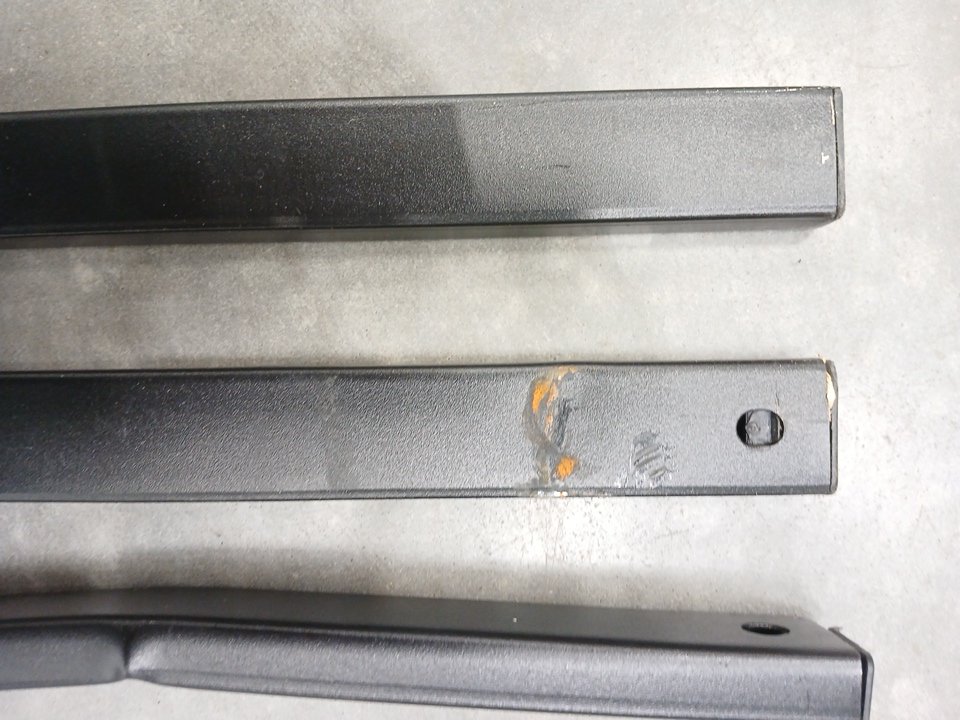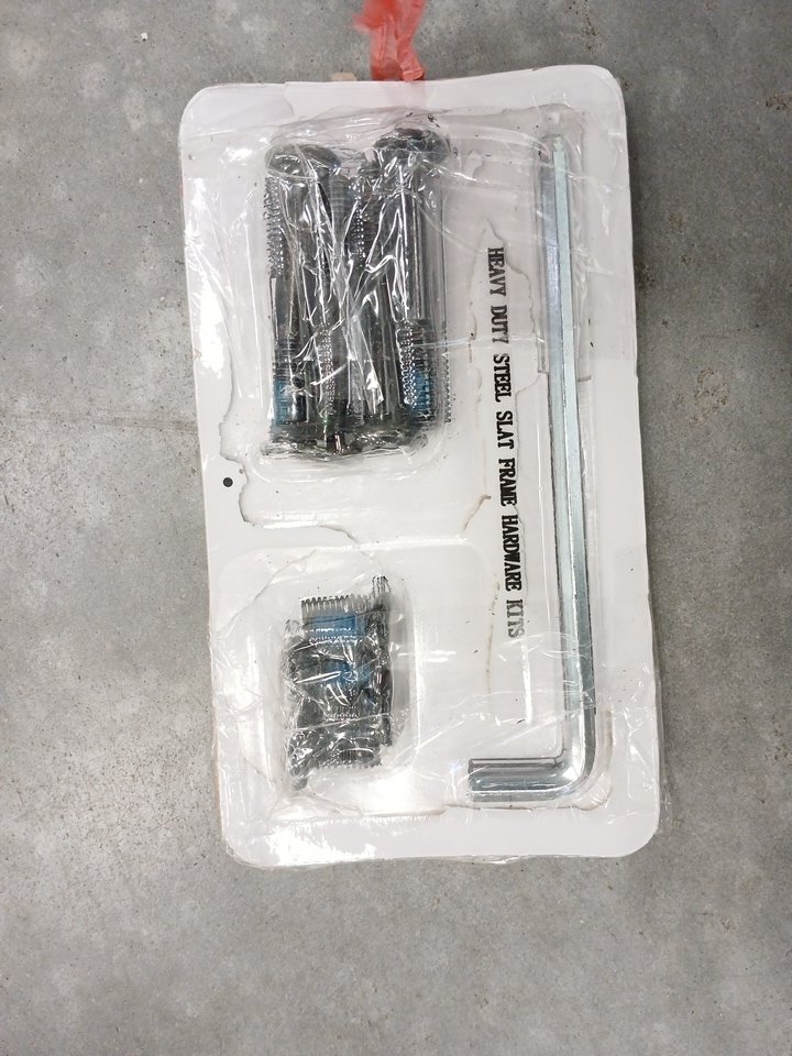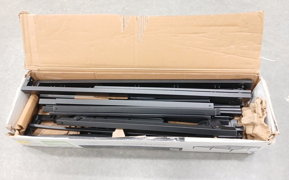 One of the metal slats is bent, but it does not appear to affect function. Some of the pieces have scratches and others an orange discolouring.