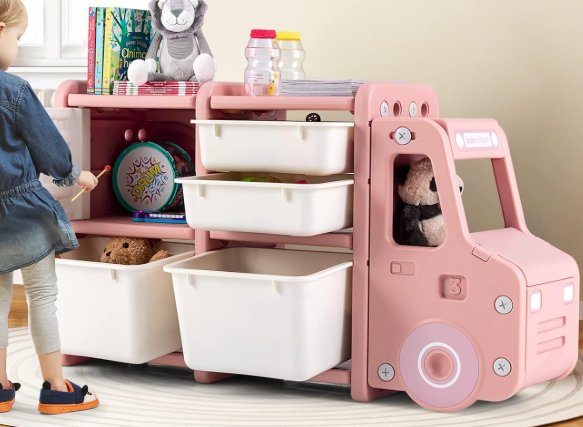 Costzon Toy Organizer and Storage with 2 Large Storage Bins - 43.5" x 26" - pink & white (model:TP10009PI)