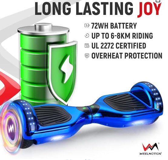 WEELMOTION Hoverboard All Terrain 6.5" Wheels, Vibrant Lights & Music Speaker, max 220lbs - chrome blue (model: wm-03)