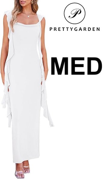 women's PRETTYGARDEN Sleeveless Ruffle Maxi Bodycon Dress - medium - WHITE