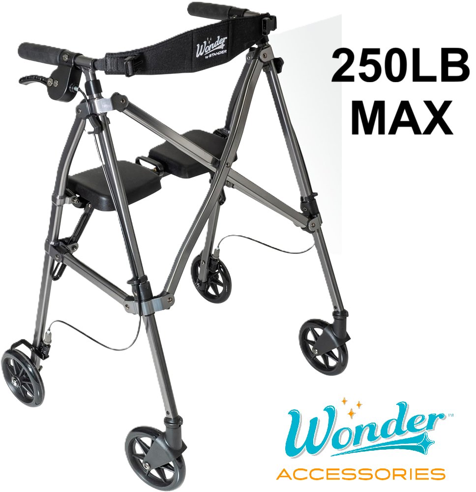 wonder rollator stander Lightweight Rolling Walker with Brakes - 250LBS CAP - Black (MODEL:4250-BW)