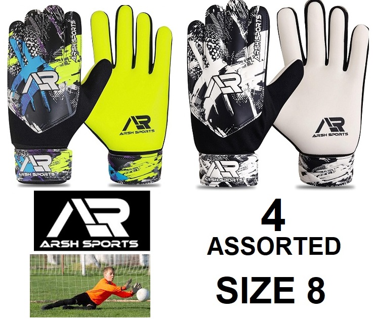 4 assorted kid's arsh sports soccer gloves - size 8 - assorted colours