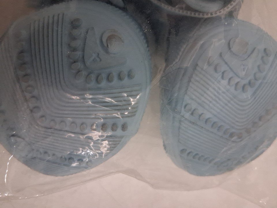 Item has light dust at the soles of the shoes from previous use. (See photos)