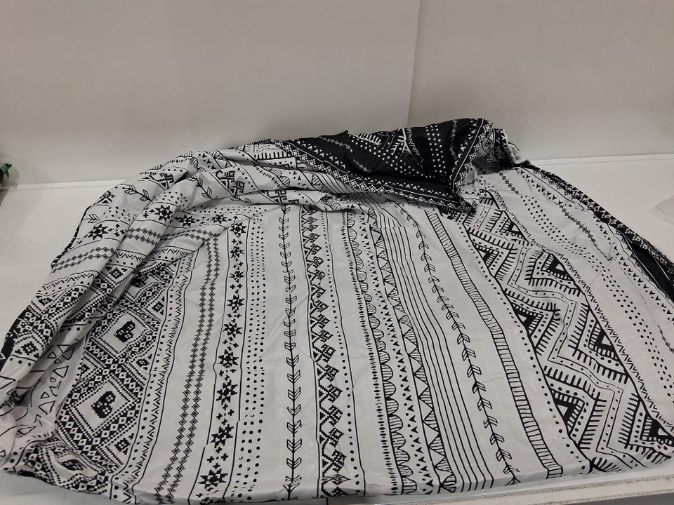 3pc lamejor geometric duvet cover set with 2 pillowcases - queen - black/white