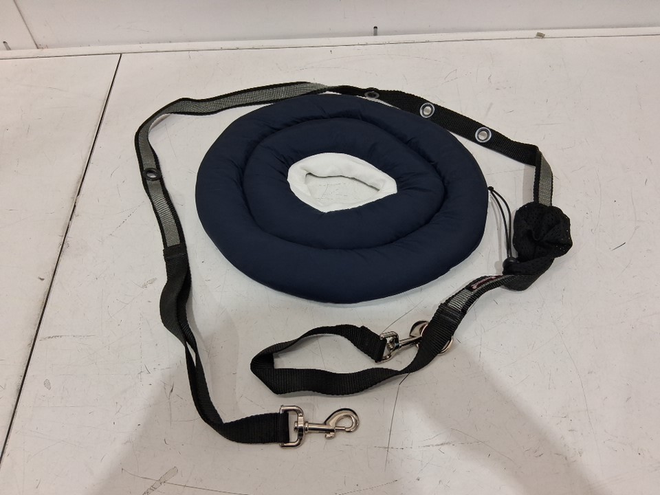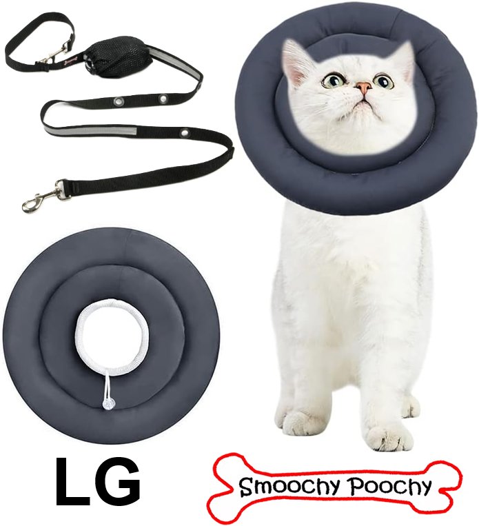 SMOOCHY POOCHY Hands-Free REFLECTIVE LEAD WITH adjustable recovery dog collar - 6FT BLACK LEASH - 3"-5" BLUE PILLOW